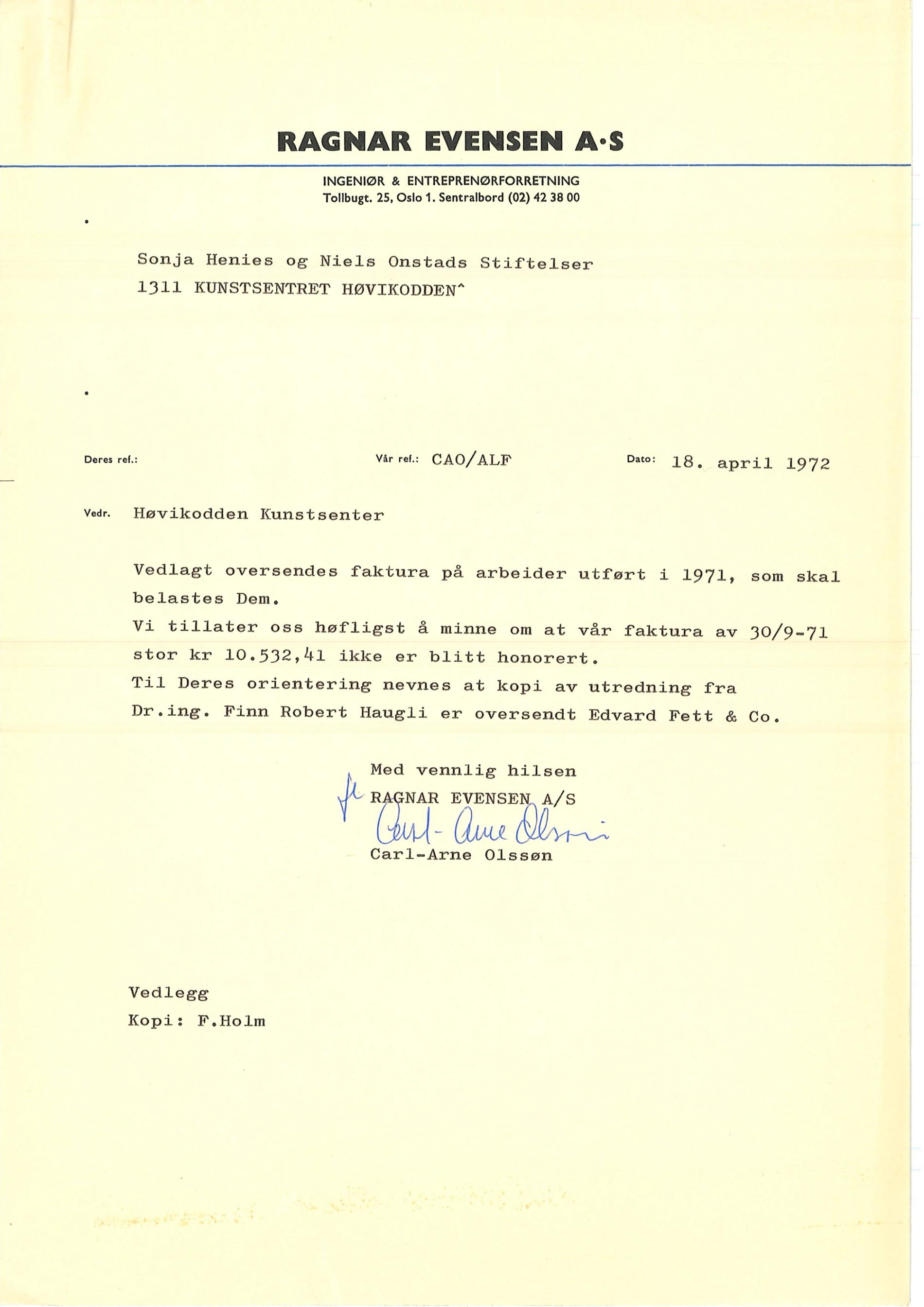 1972.04.18 invoice Regnar Evensen