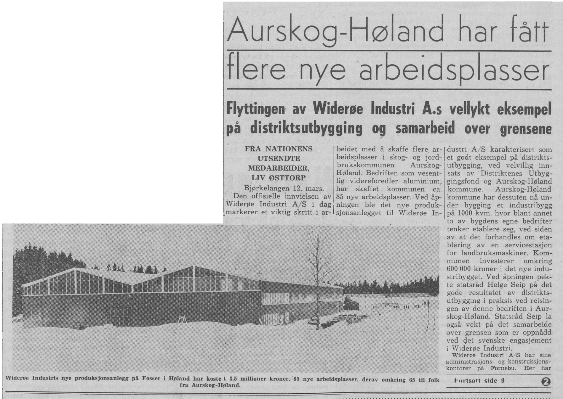 1968.03.13 Widerøe factory opens in Aurskog Hørland
