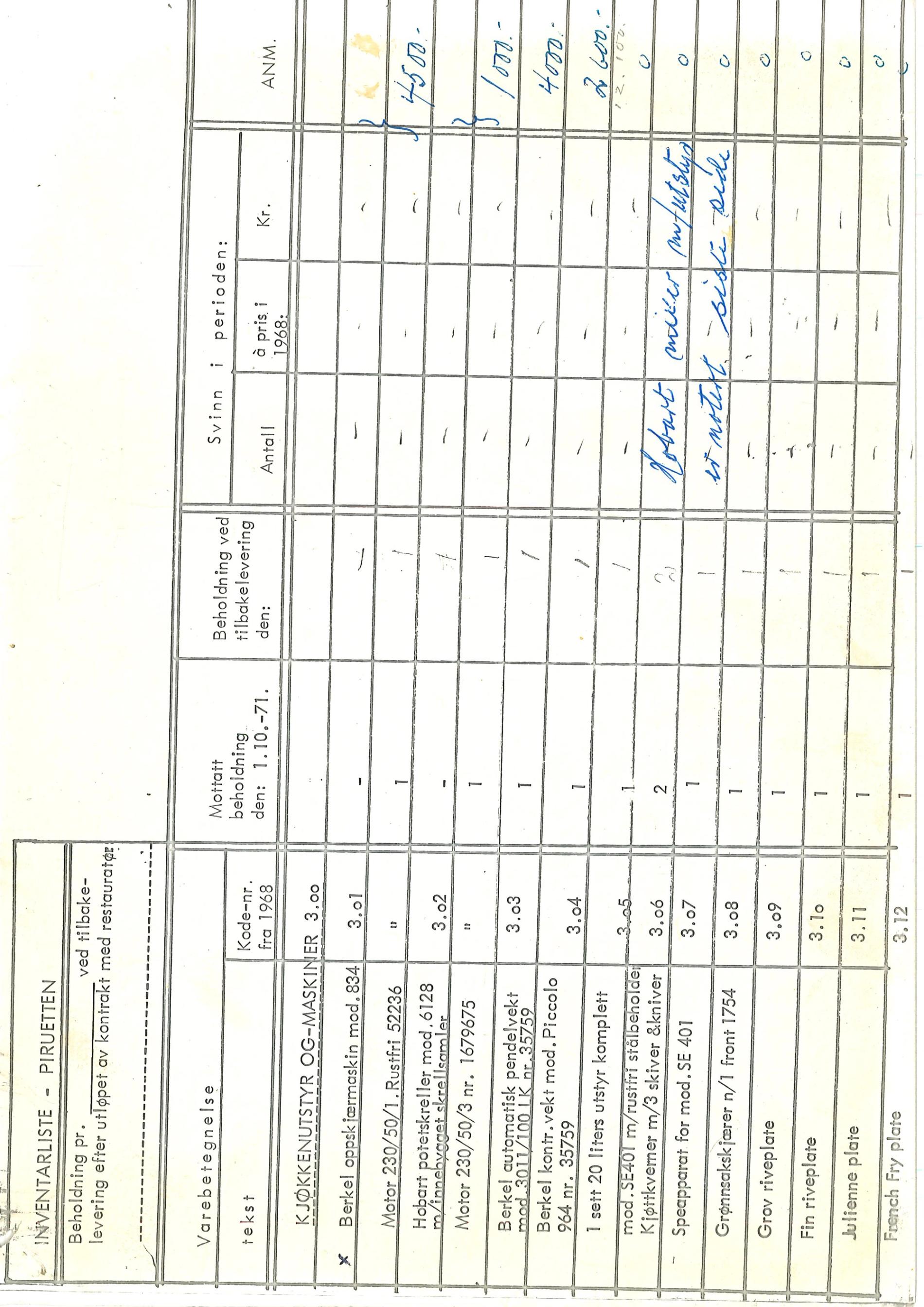 1971.10.01 inventory of restaurant