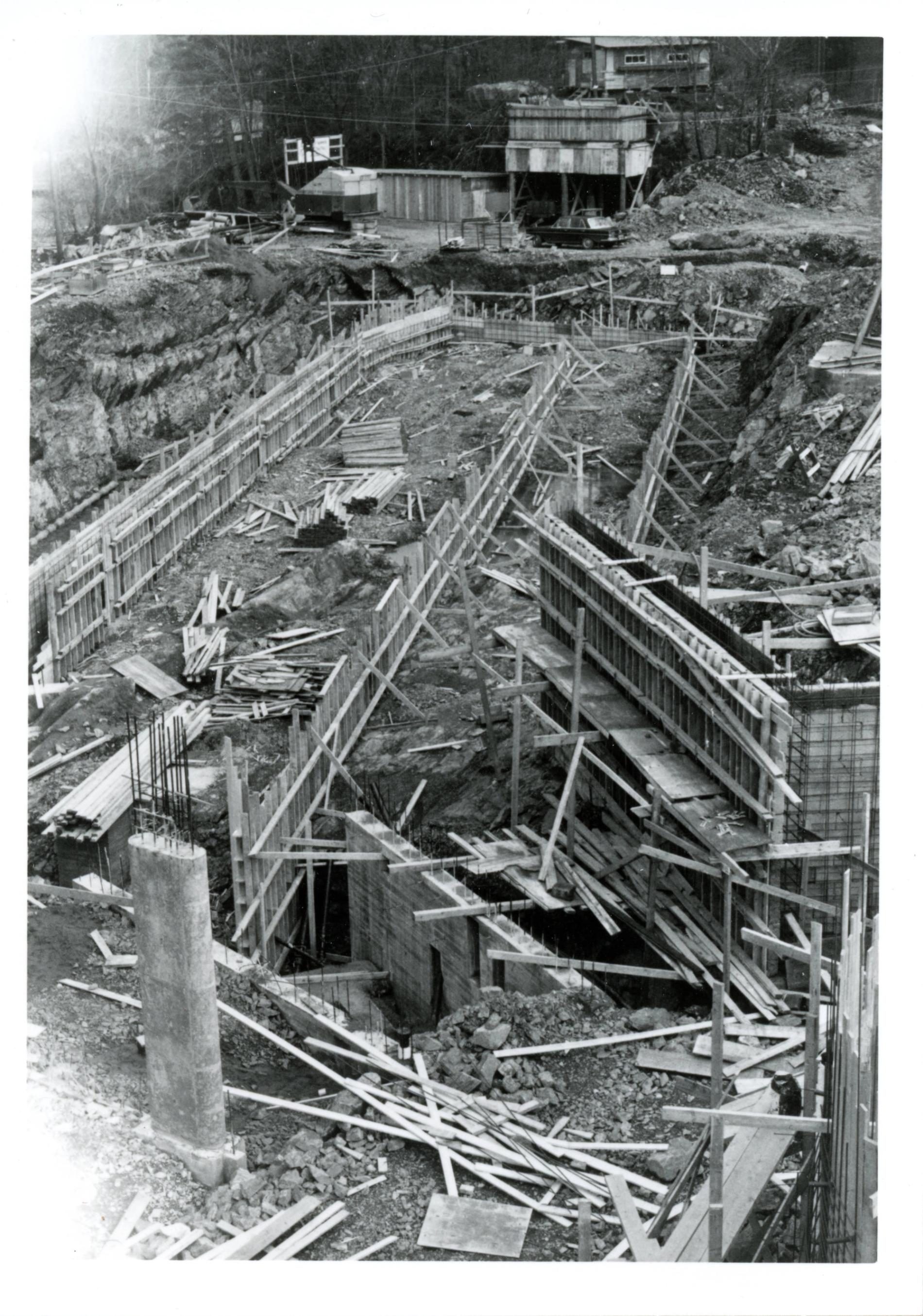 Conctruction photos Henie Onstad 1968 in black and white