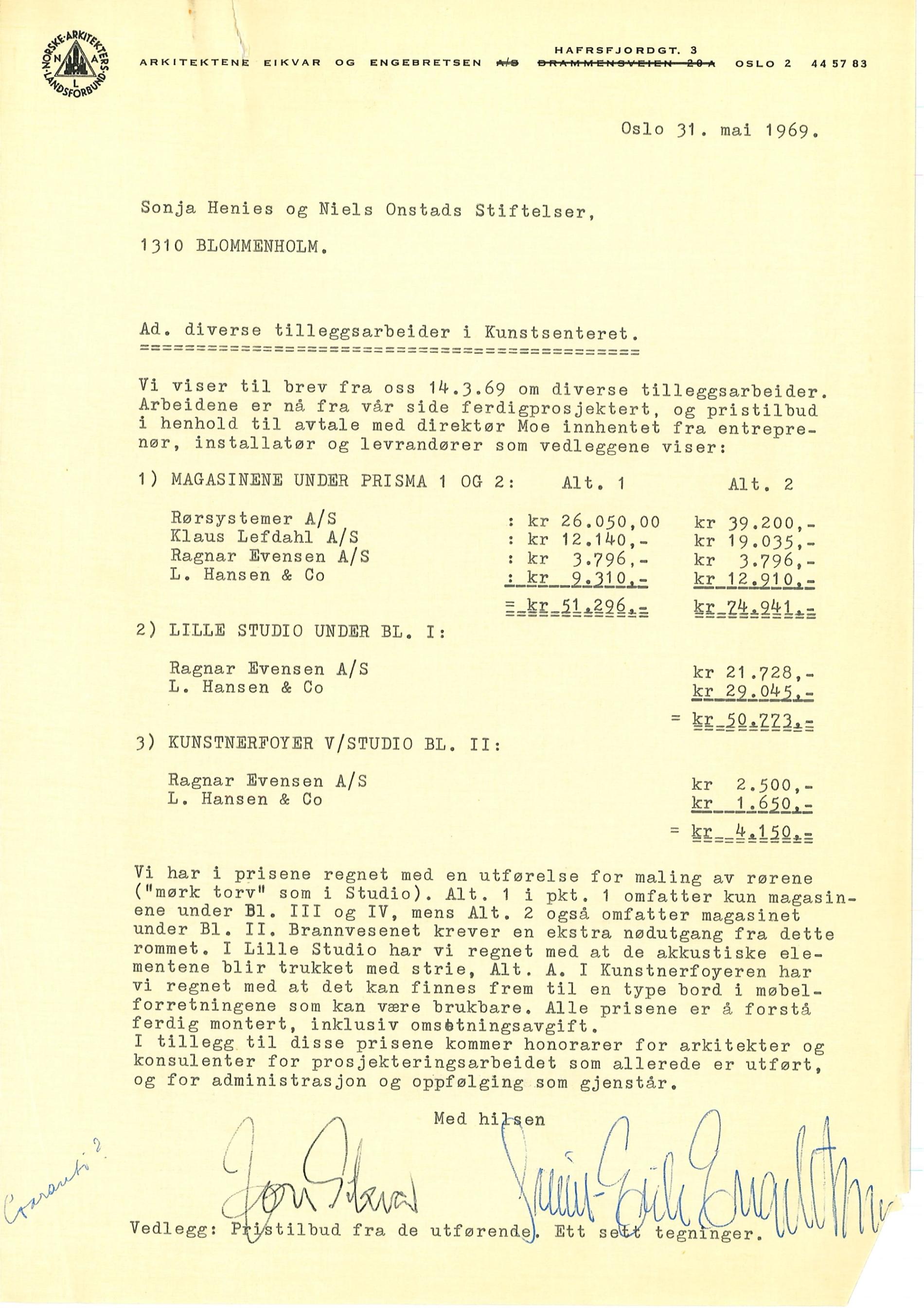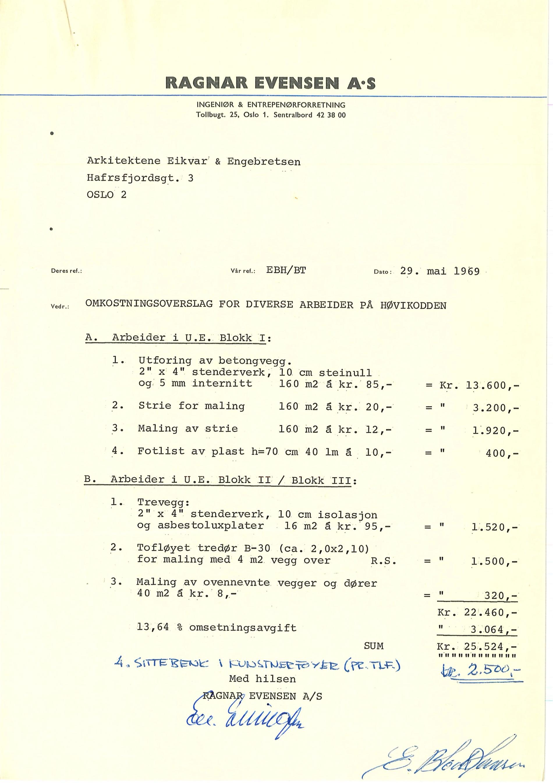 1969.05.29 cost estmation mis. work Ragnar Evensen