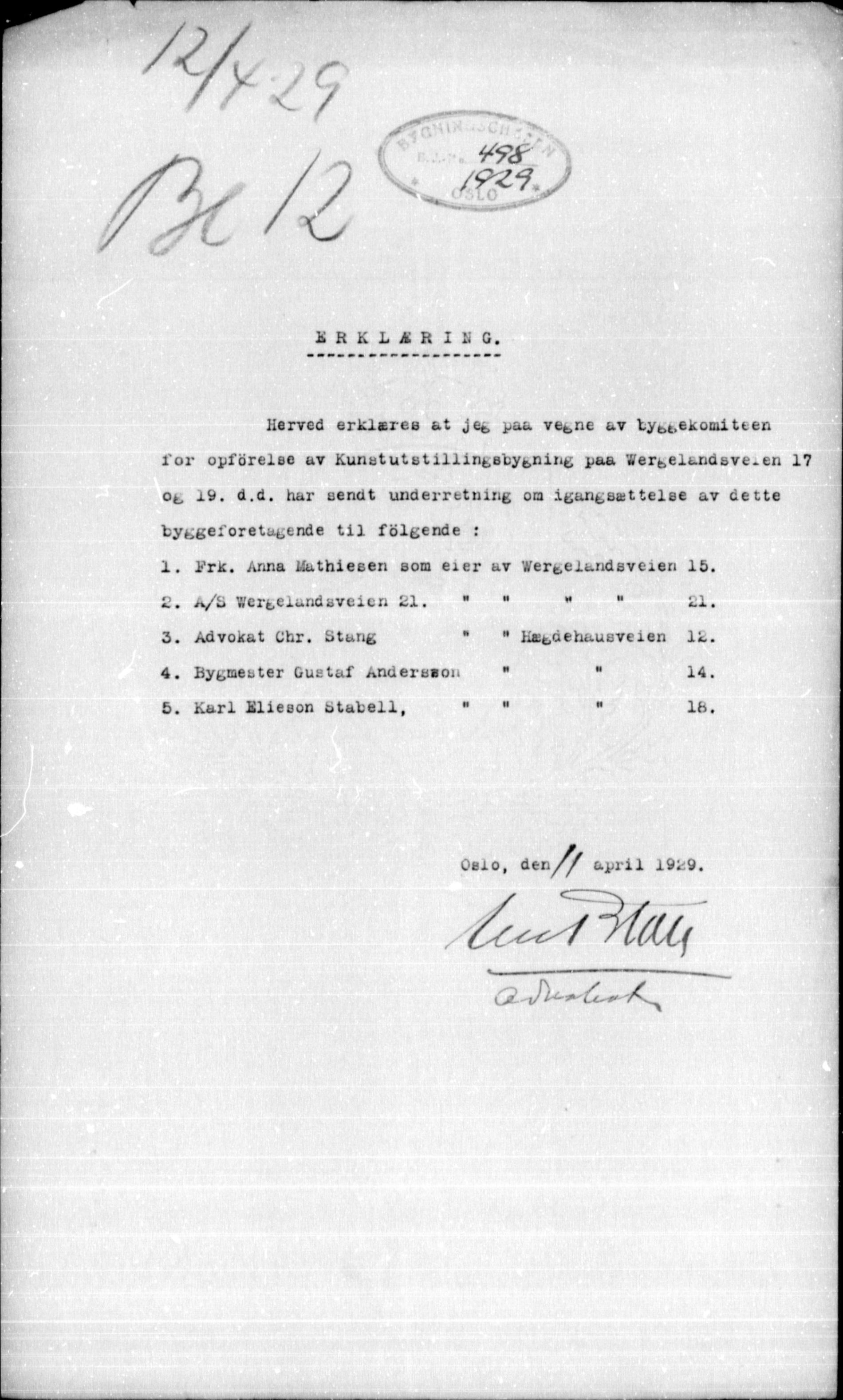 1929 Building Application Documents (Original Application)