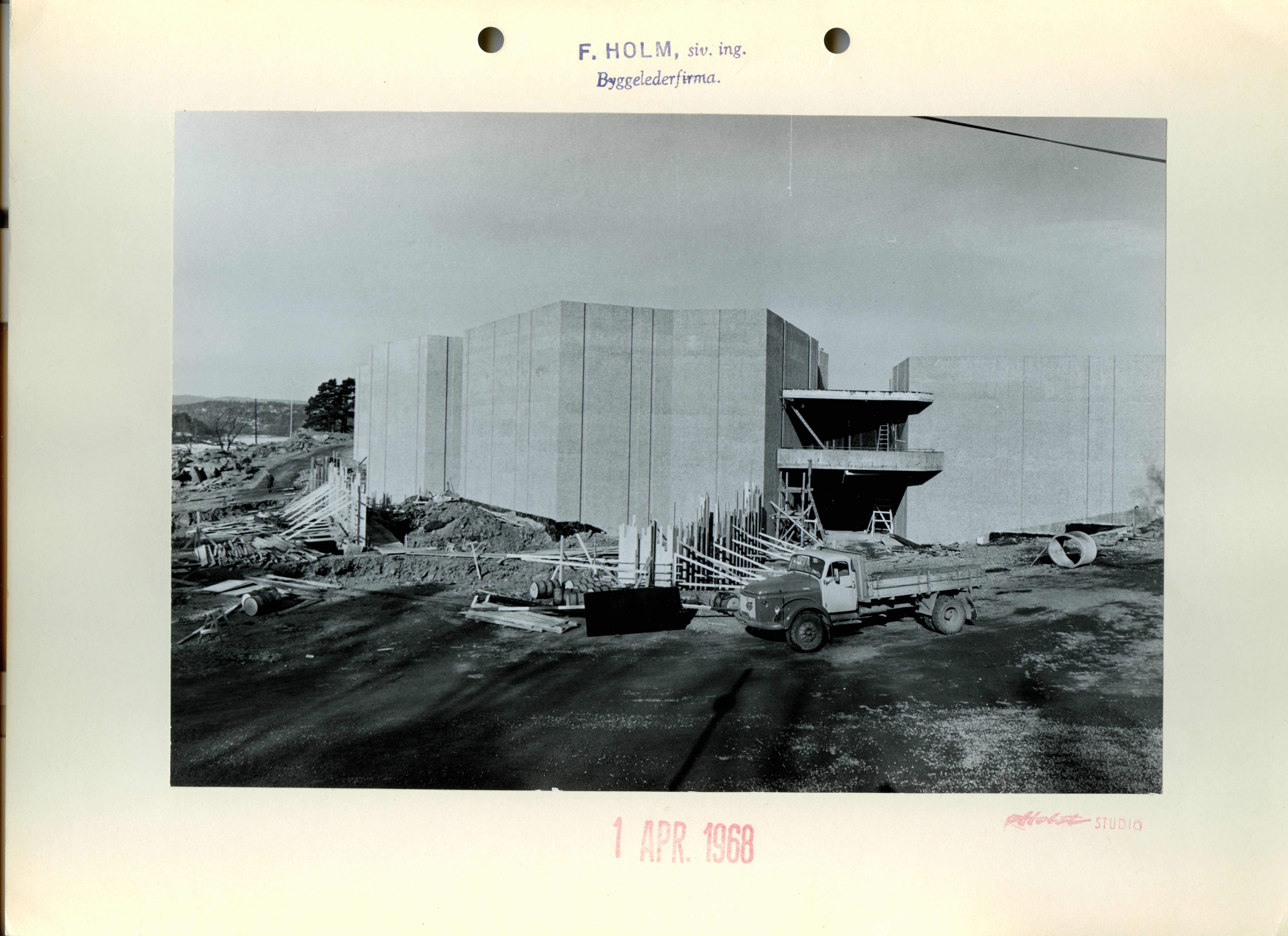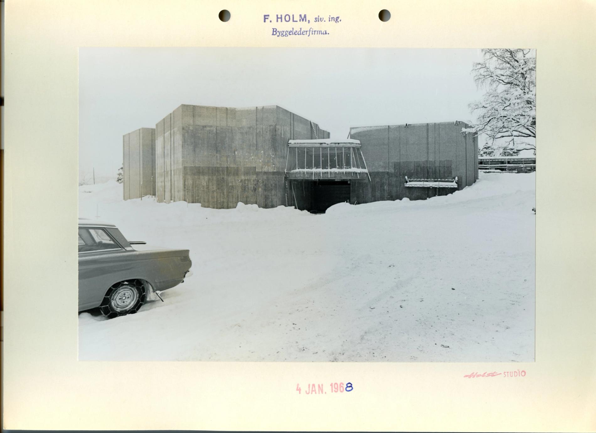 Conctruction photos Henie Onstad 1968 in black and white